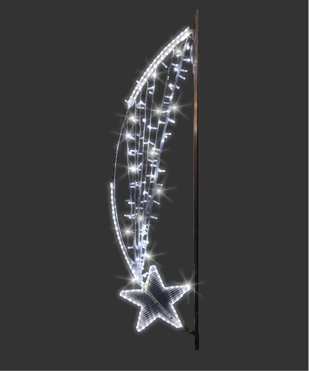 Sa silhouette gracieuse évoque la fluidité d’une étoile filante, parfaite pour animer les artères principales et les zones piétonnes. Résistante et légère, elle s’installe facilement et conserve tout son éclat au fil des saisons.